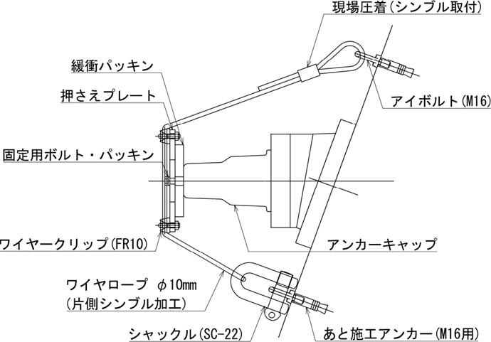 頭部部材をアンカーキャップに固定し、ワイヤロープを設置するだけという簡易な構造です。