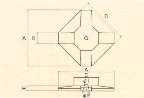 | A | B | C | D | H | φ1 | φ2 | ||||