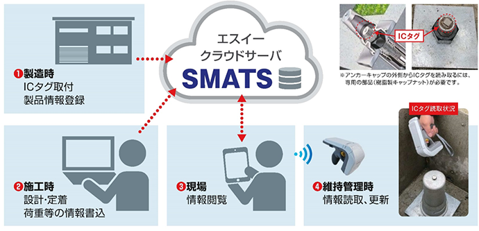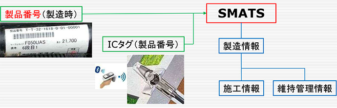 SMATS(ICタグ管理システム)による、製造・施工・維持管理を一元管理できます。